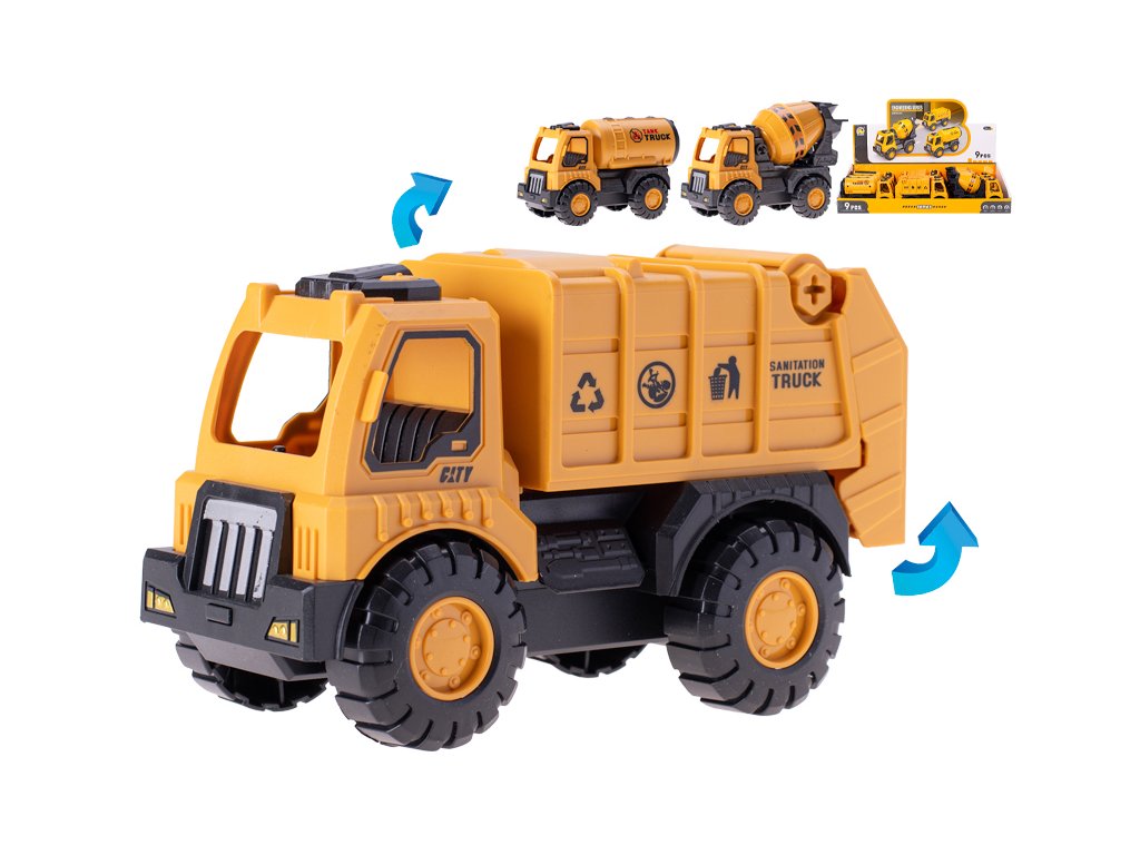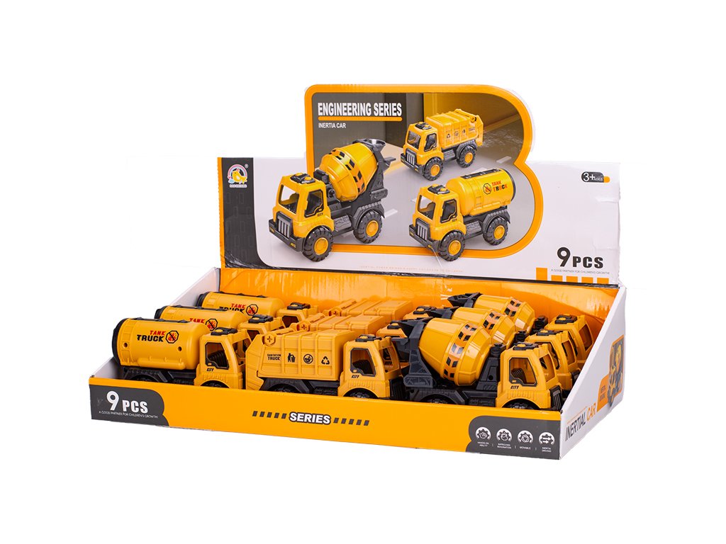 Vozidla stavební 15cm na setrvačník 3druhy 9ks v DBX