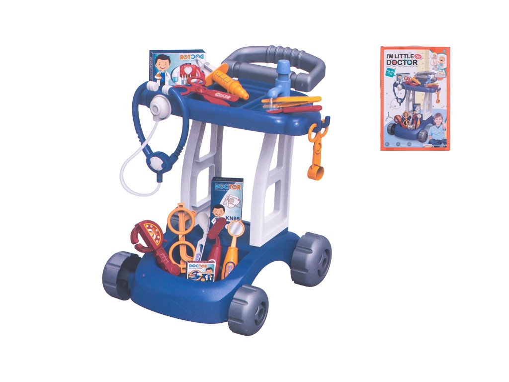 Vozík doktorský 37x31x37,5cm modrý s doplňky v krabičce