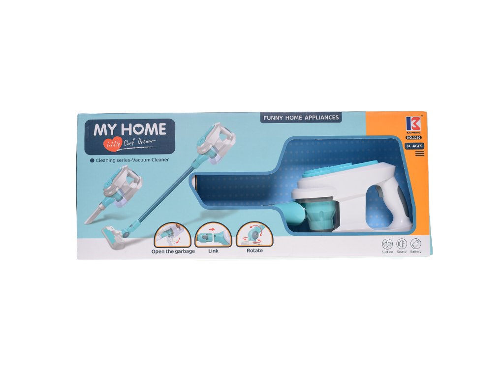 Vysavač tyčový 34cm na baterie s doplňky 3ks se světlem a zvukem v krabičce