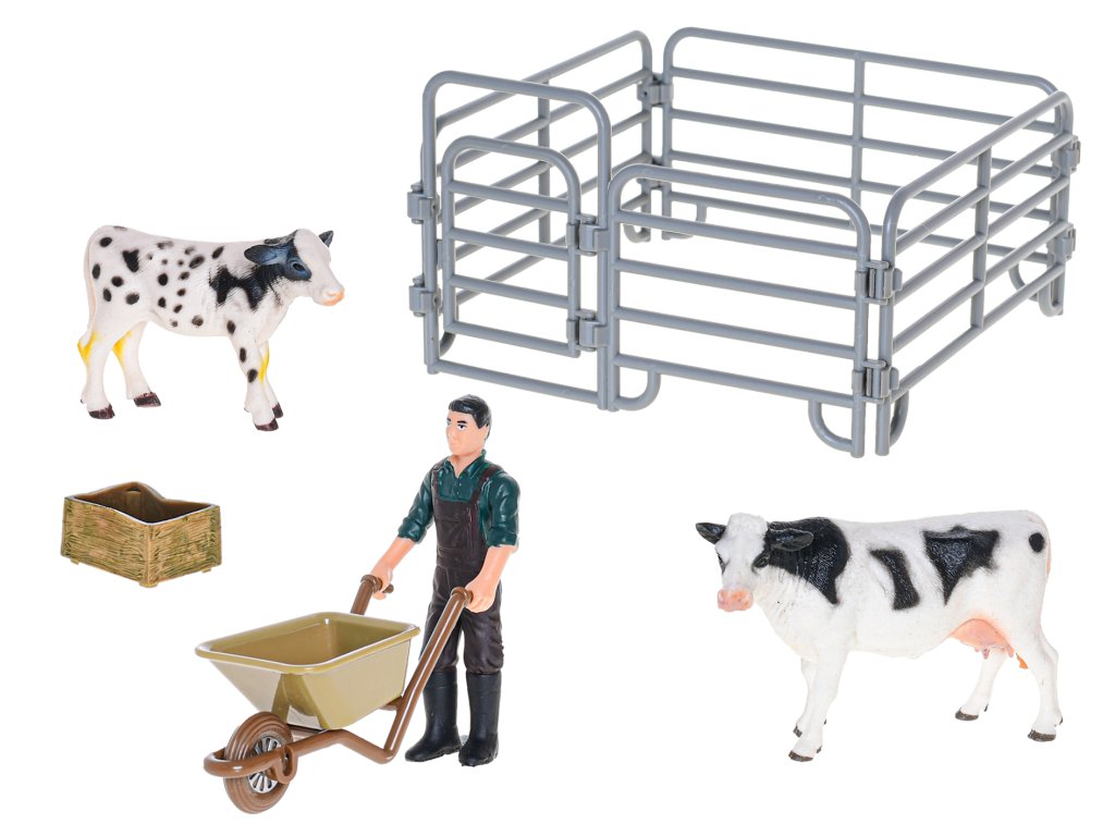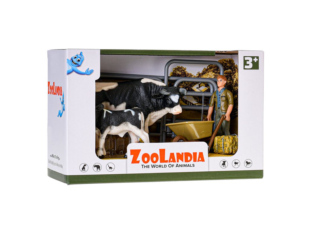 Zoolandia kráva/býk s telátkem a doplňky 4druhy v krabičce