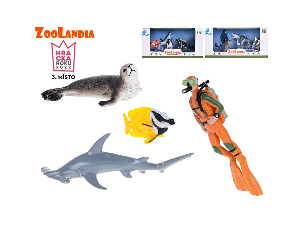 Zoolandia potápěč se žralokem a doplňky 3druhy v krabičce