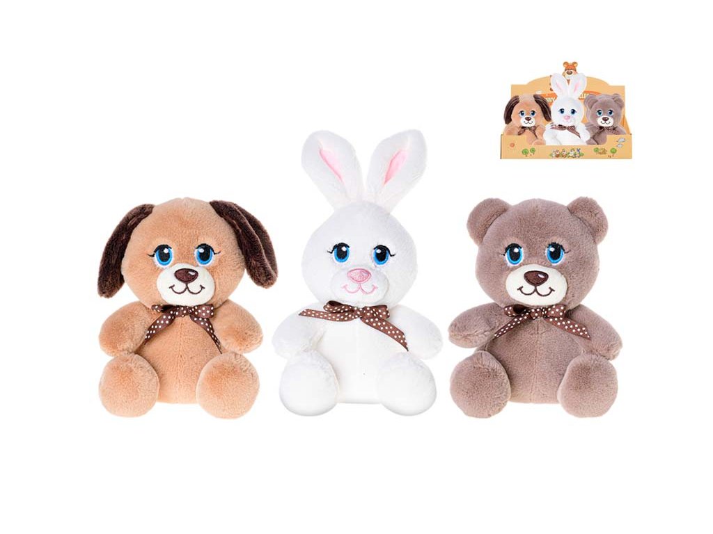 Zvířátko plyšové 15cm sedící s mašlí 3druhy 0m+ 12ks v DBX