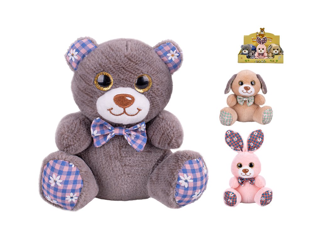 Zvířátko plyšové 15cm sedící s mašlí 3druhy 0m+ 9ks v DBX
