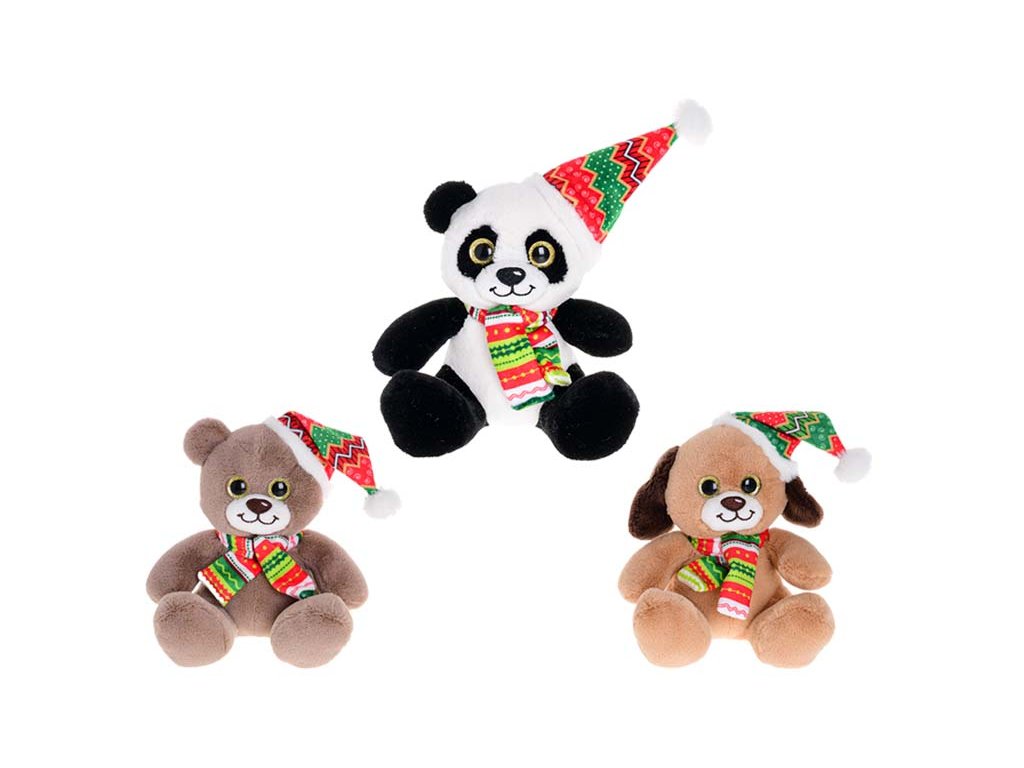 Zvířátko plyšové 15cm sedící velké oči s čepicí a se šálou 3druhy 0m+