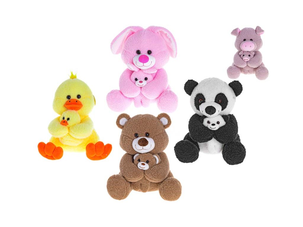 Zvířátko plyšové sedící 24cm s mládětem 12cm 5druhů v sáčku