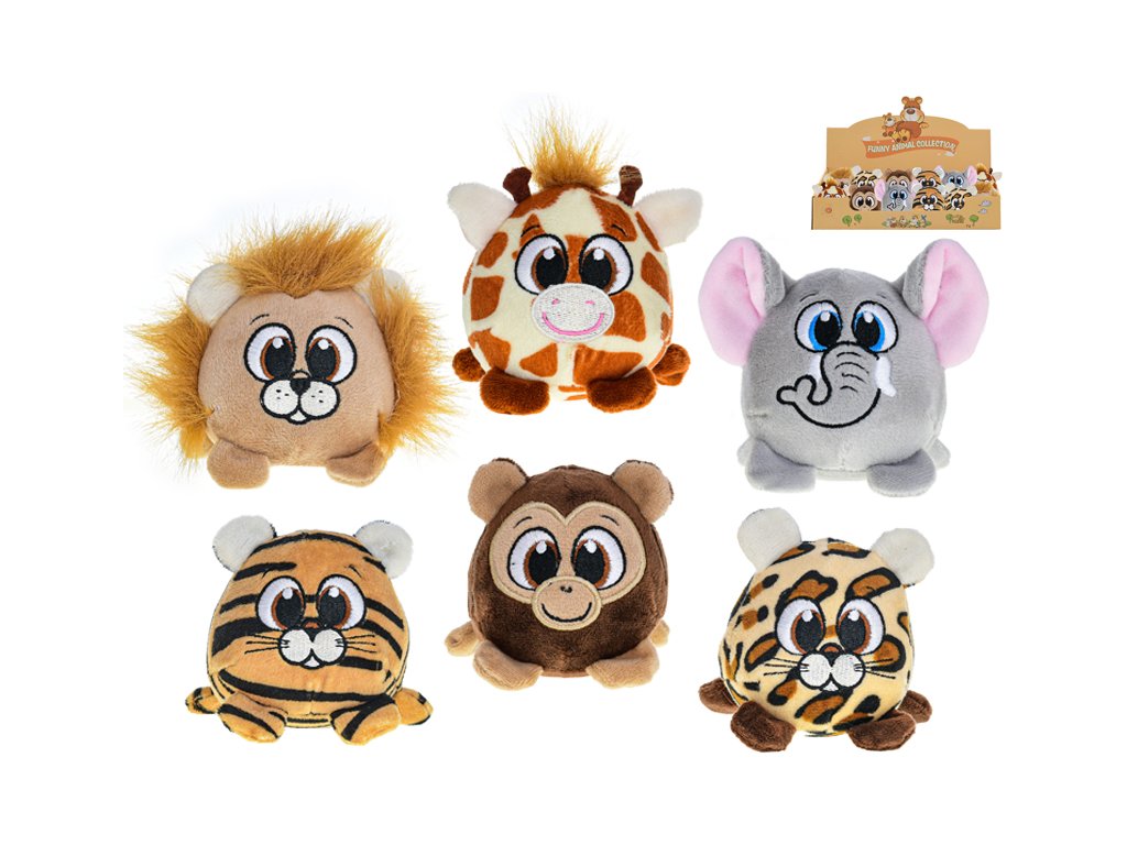 Zvířátko safari plyšové 10cm kulaté 6druhů 0m+ 12ks v DBX